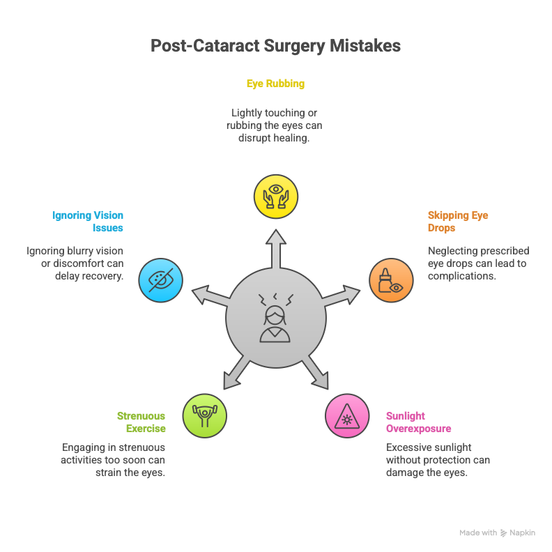After cataract surgery, your eye is healing from incisions, internal manipulation, and the insertion of an intraocular lens (IOL). The ocular surface and tear film are particularly sensitive. Any external irritant — pollen, dust, smoke, can: